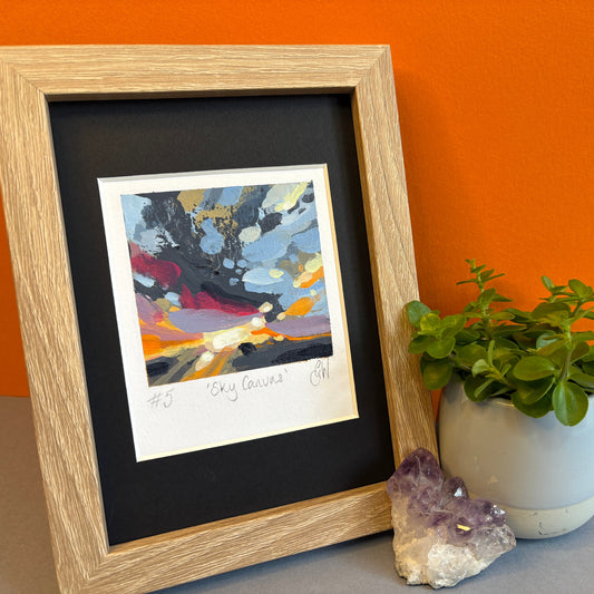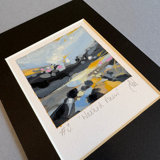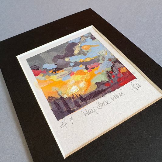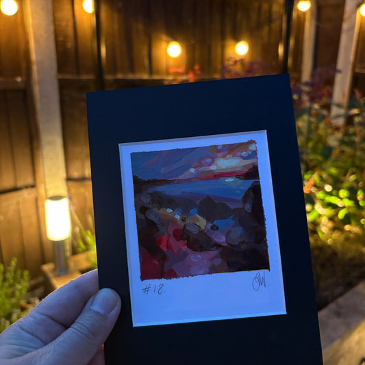 Welcome to Snapshots, my new series of vibrant, bold, and dreamlike paintings. These tiny, hand-painted artworks capture the subtle, profound moments that illuminate our lives, from the soft glow of a sunset to the unexpected light after a storm.