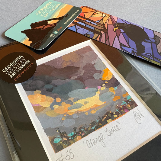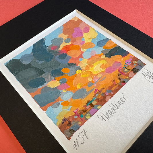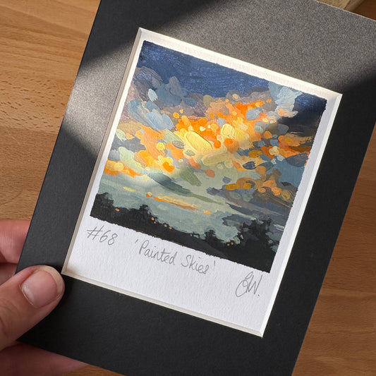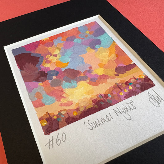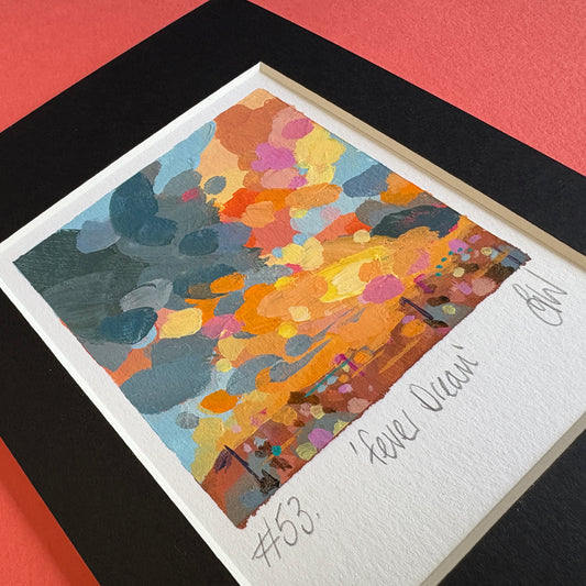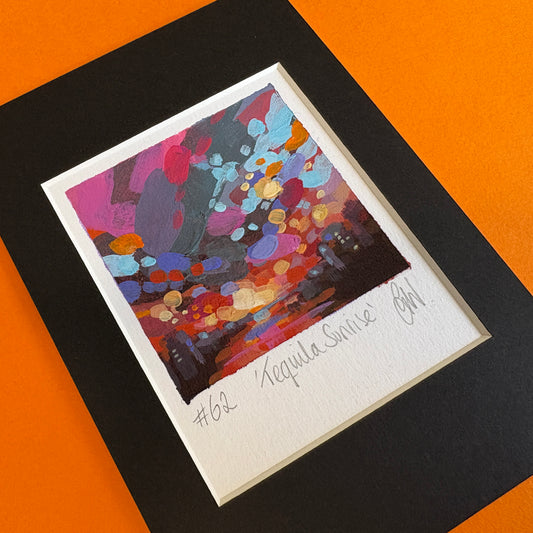 Welcome to Snapshots, my new series of vibrant, bold, and dreamlike paintings. These tiny, hand-painted artworks capture the subtle, profound moments that illuminate our lives, from the soft glow of a sunset to the unexpected light after a storm.