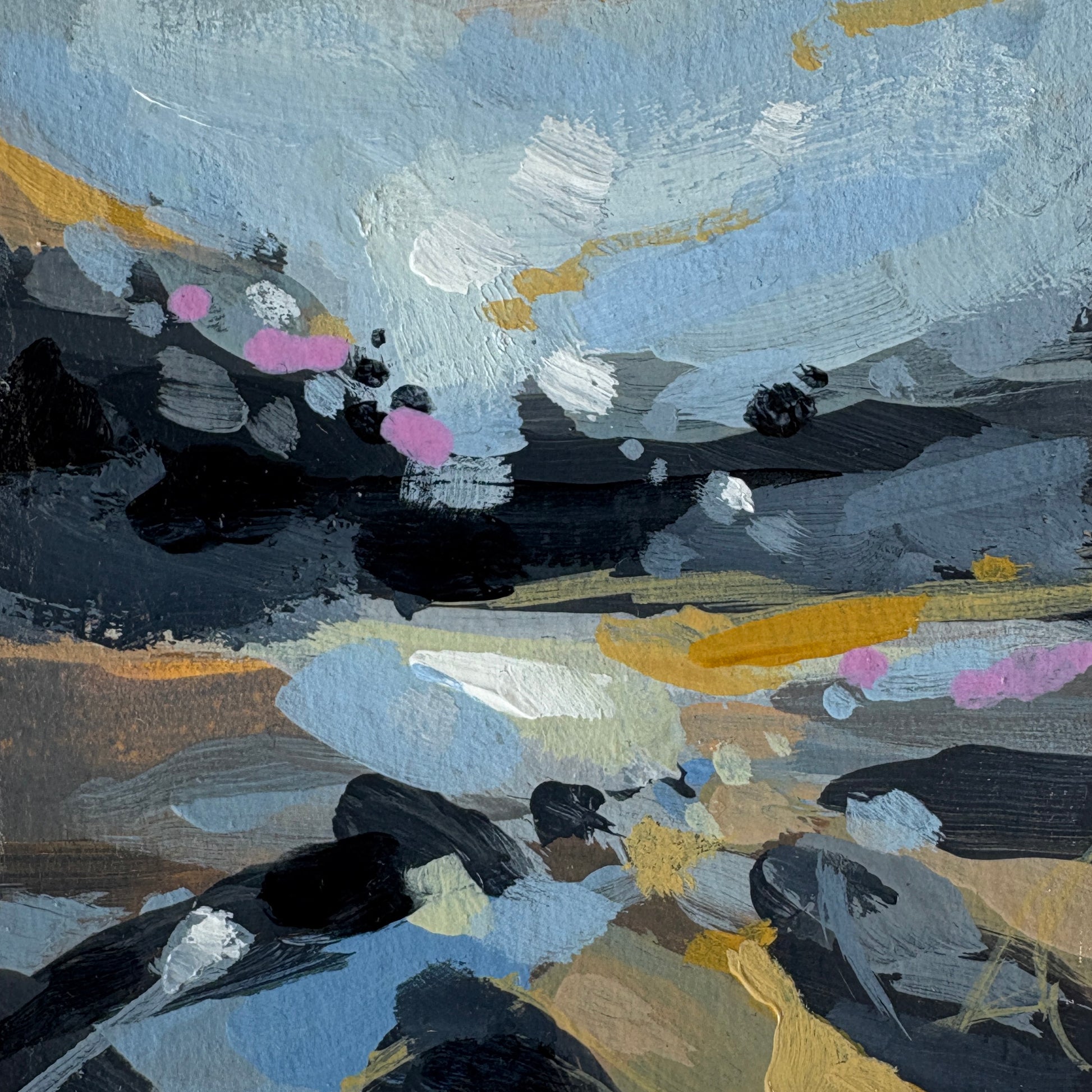 Vibrant, bold, and dreamlike, these tiny artworks have the nostalgic charm of an 80s Polaroid. Each original, hand-painted piece is created in one sitting, with distinct impressionistic brushstrokes and emotive colours. A coat of gloss varnish adds depth and a hazy, luminous glow.