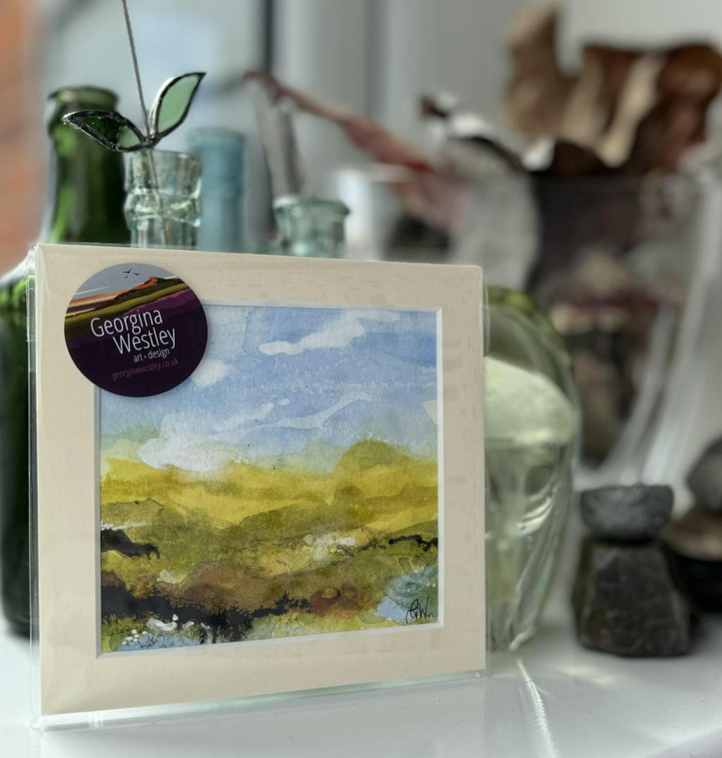 A single sheet of watercolour blossoms into ten captivating worlds. Beyond the Wild Gorse invites you on a miniature adventure. Each 10cm x 10cm piece brims with life, hinting at hidden nooks and rugged landscapes. These evocative, semi-abstract works spark your imagination, urging you to explore what lies beyond the frame. As part of a connected series, they weave a larger artistic vision. Which one will ignite your curiosity?