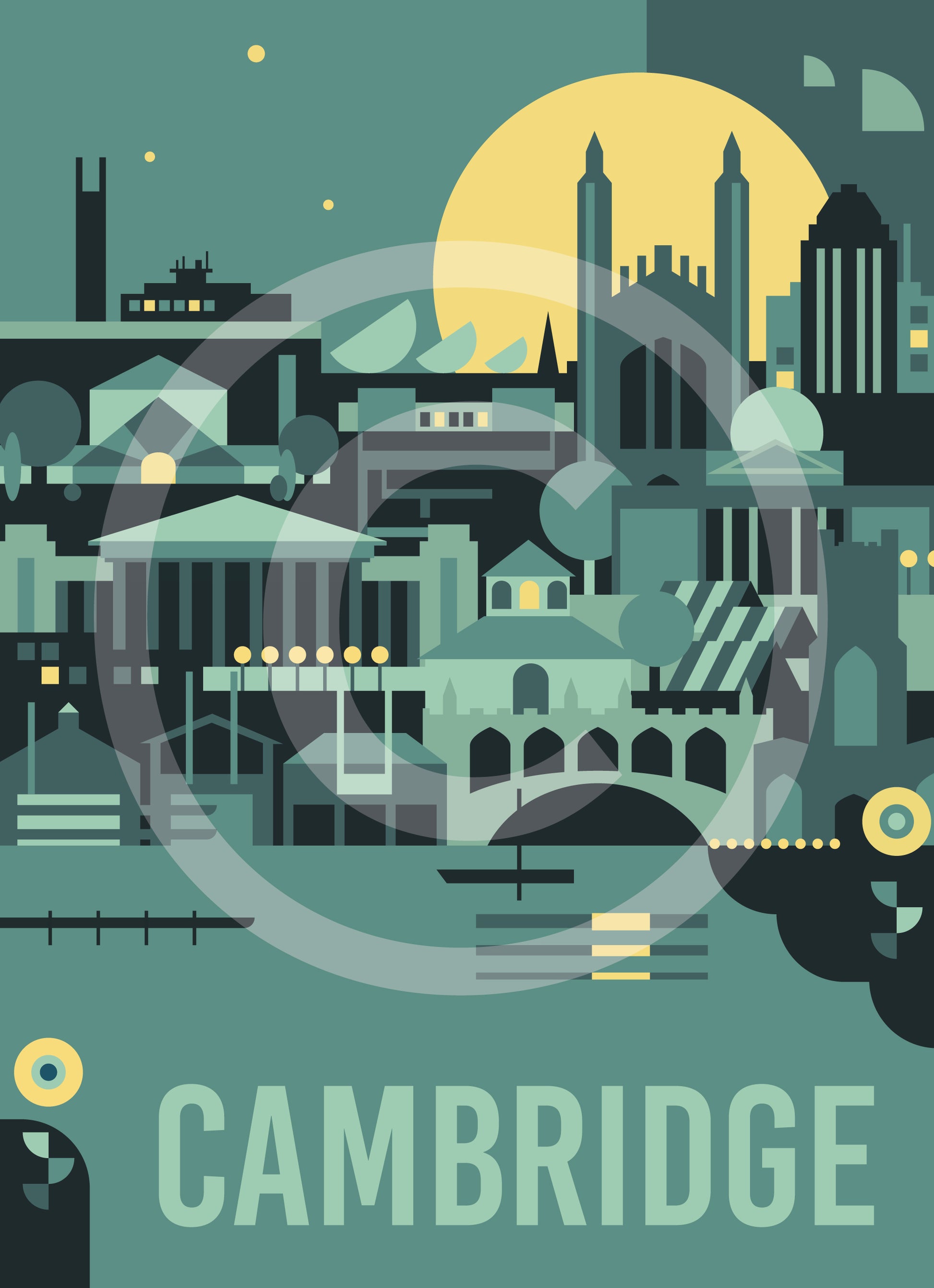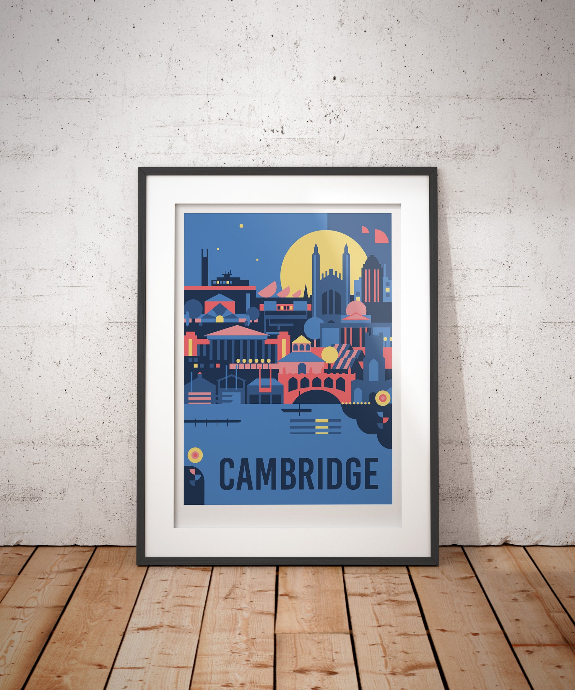 Full of life and rammed with students, bikes and tourists, Cambridge is a beautiful and vibrant university city. Whether you are a local resident, student at the many Universities and colleges or a tourist after a reminder of your visit, there's plenty of local landmarks on this print to reflect the place you love. Can you spot the following? Kings College, University Library, Institute of Astronomy, Bridge of Sighs, Cambridge University boat houses, The Fitzwilliam Museum, The Round Church, Addenbrookes and Papworth Hospital, Cambridge Botanical Gardens and the David Attenborough Building.