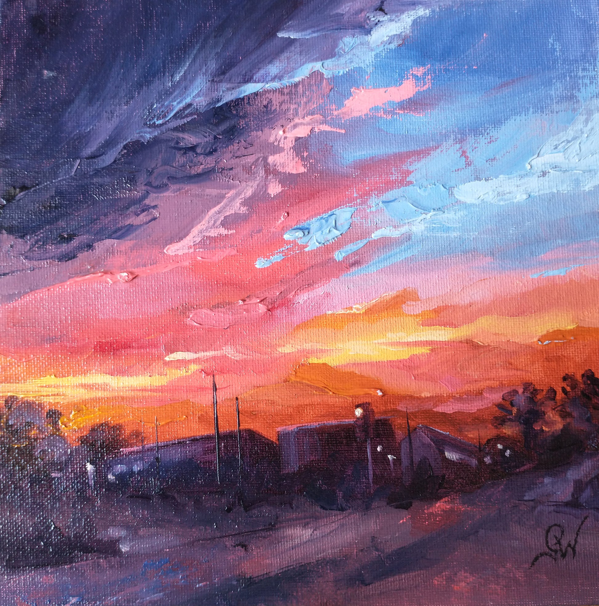 - Colours used: cadmium orange, blues, purple and paynes grey.